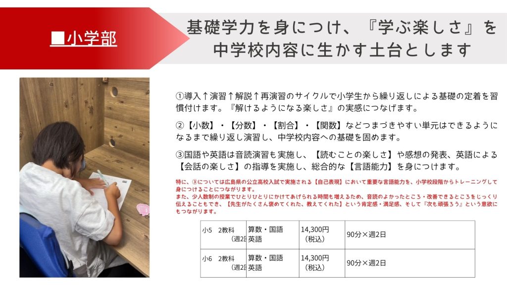 少人数解説指導、少人数個別問題演習指導、国語音読指導、英語音読指導