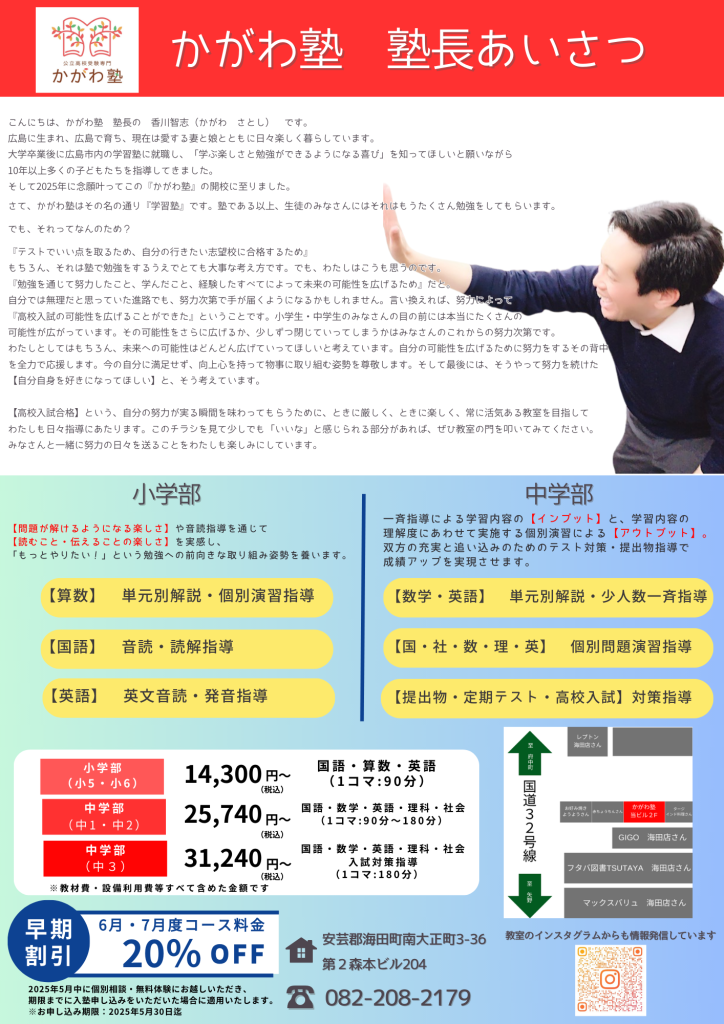 「あ、これかがわ塾のチラシだったんだ!!」