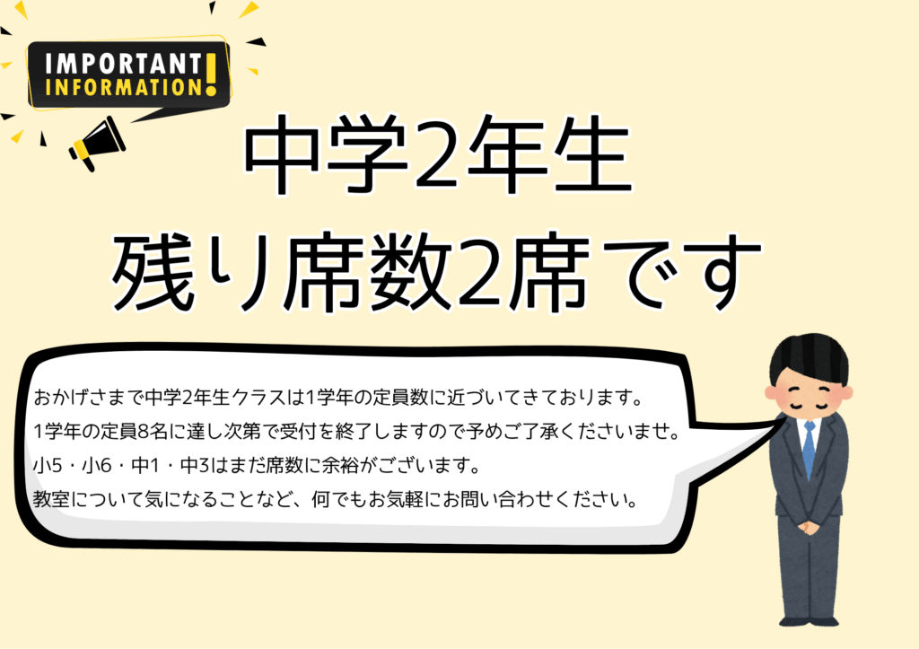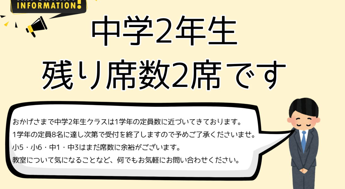 もし「最近できたかがわ塾って、ちょっと気になるなぁ、、、、、」という中学2年生の方がおられましたら、枠が埋まる前にぜひお気軽にお問い合わせください!